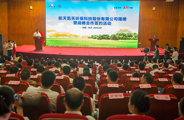 湖南省副省長張劍飛,中國航天科工集團公司黨組書記、董事長高紅衛共同為“航天凱天環保科技股份有限公司”揭牌。